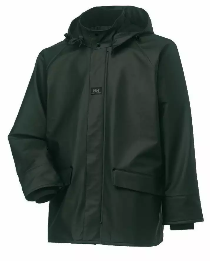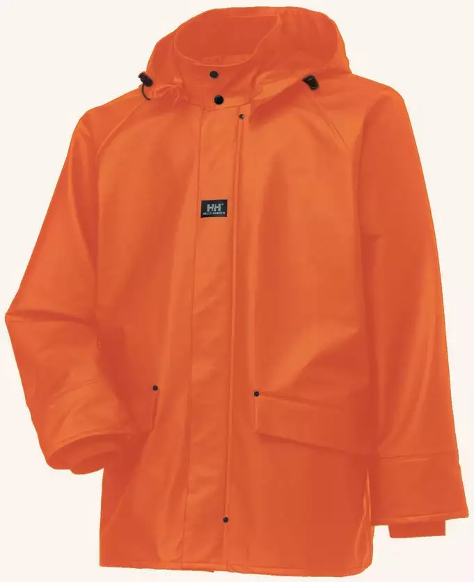 Stay dry on rainy days at the jobsite in this waterproof jacket. The PU shell features a comfortably loose fit and double storm flaps to prevent moisture from seeping in through the zipper. The three-panel hood has a drawcord with cord locks to pull it snug around your head, sealing out cold air.