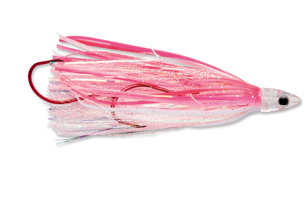 - Rigged with 36″ of 50 lb. Sufix monofilament & premium VMC® Octopus hooks and tinsel