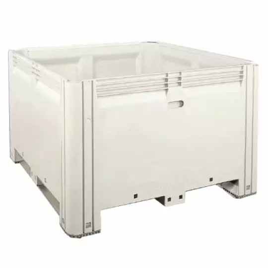 All bins are ivory unless noted otherwise. Other bin colors are available at an additional cost. All bins are available with foil embossing at an additional cost. Dimensions assume tolerance of 1/8″ or 3 mm. Cubic capacities assume tolerance of 5% and tare weights assume tolerance of 4% unless noted otherwise. Maximum Stack Weight = (weight of bin contents + tare weight of bin) x number of bins in stack. Stack weights also influenced by length of storage and temperature; a = long term, ambient temperature; b = short term, ambient temperature (1 month or less); c = long term, cold storage (0º F to 35º F or -17ºC to 2º C). Ambient temperature approximately equal to 75º F (23.9º C) . Please contact Macro Plastics if storage temperature is below 0º F (-17º C).Please refer to the MacroBin User Guide for information on the safe transportation, stacking and handling of MacroBins. Data is subject to change. Confirm with specification sheets.