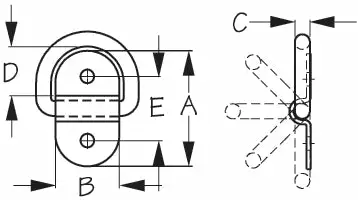 These Folding D-Rings are convenient for keeping fittings out of the way when not in use. Great for a multiple applications, including rigging, tie-down, and securing cargo for storage or transport. Constructed of corrosion resistant stamped 304 stainless steel. Installs with two RH fasteners (not included).