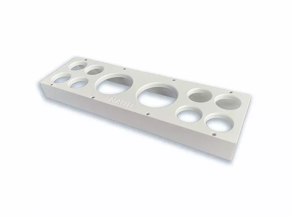A perfect item for any Gunnel on back of the boat. This Lead Bed can hold up to 2 downrigger cannon balls in the range of 12-20lbs and 8 fishing weights to keep your gunnels secure and tidy. This product is precision CNC cut from King Starboard, and is ideal for the harsh marine environments. Mounting screws or bolts are not included.