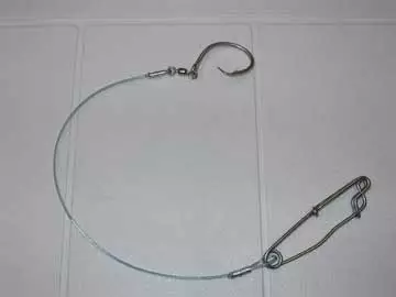 Halibut Hookup with #96 Stainless Snap, 16/0 Mustad Circle Hook w/swivel and 500lb Monofilament line.