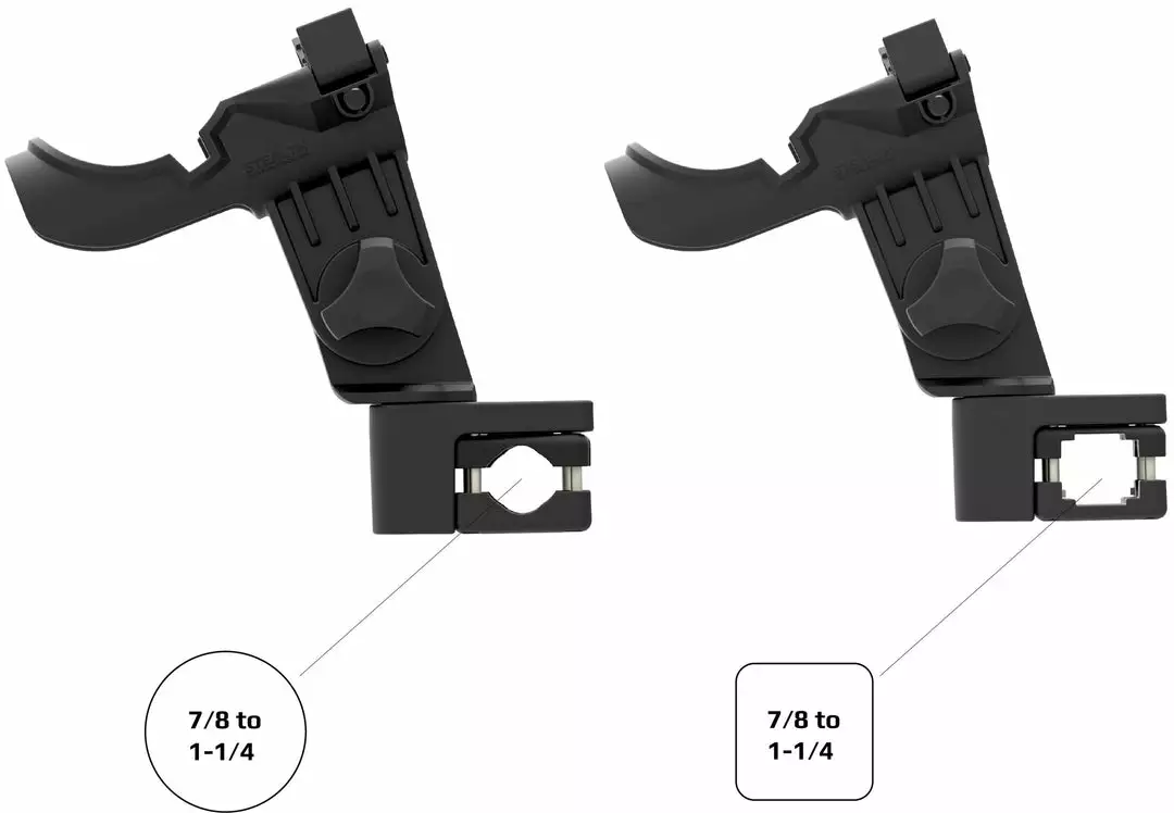 Our most versatile mount. This mount clamps onto round or square railings up to 1-1/2 inches in diameter. Great for pontoons or stainless railings or grab handles. No drilling required.Â