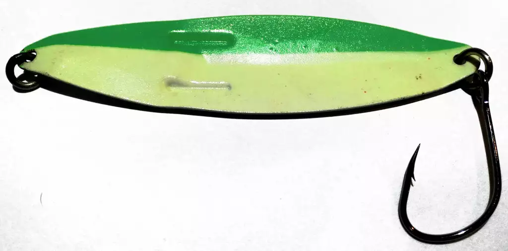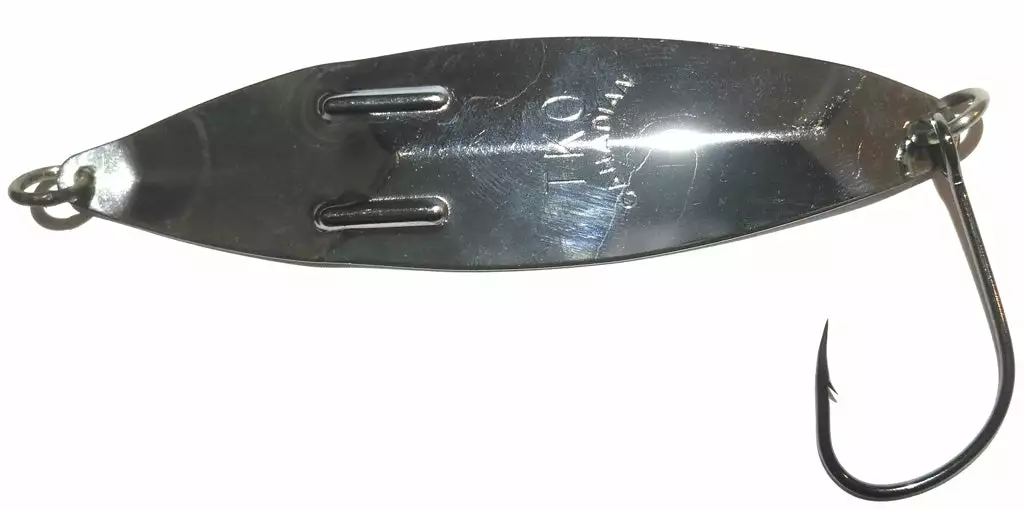 This spoon size no 3 is a clone of the Kipple K spoon. To this collection, we have added size no 4 and no 6. The #6 TKO spoon is popular with the sports sector for catching Chinooks and Cohoes. There are 10 popular colours in addition to the metal finishes for sports fishing. The weight of the size no 3 spoon is similar to Silver Horde’s Lite Bite.