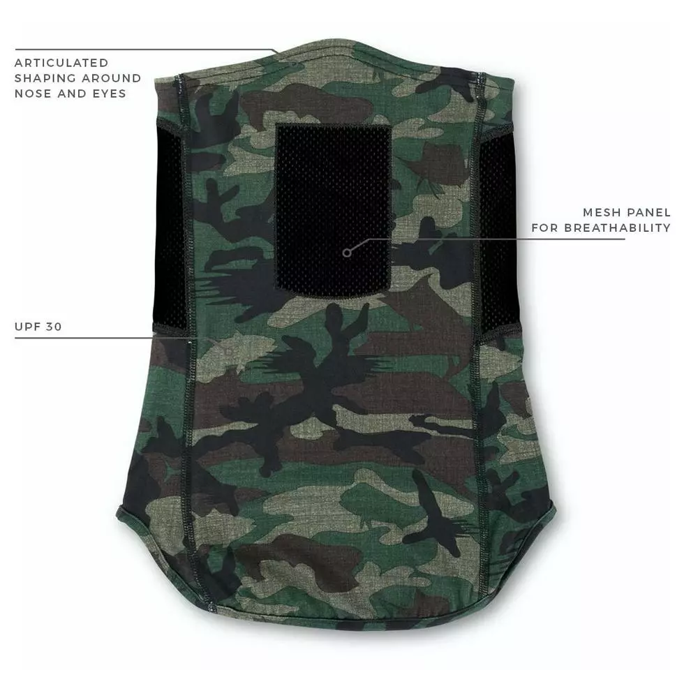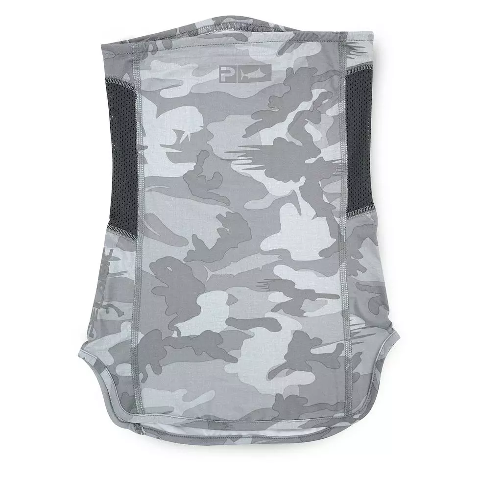 The Pelagic Sunshield Pro 2.0 fishing face mask in Grey Fish Camo takes sun protection and comfort to the next level. Designed on a lightweight and breathable fabric, the Sunshield Pro 2.0 fishing neck gaiter features an articulated nose and an enlarged mesh breathing zone. Enjoy UPF 30+ sun protection to help protect your face, head, neck, and ears, while the strategically placed fine mesh panels allow for increased airflow, making it easier to breathe normally when covering your face.