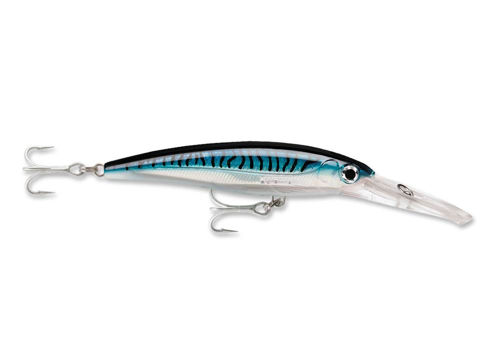X-Rap® Magnums® run perfect right out of the box, no wasted time tuning. The massive diving-lip takes the X-Rap® Magnums deep… unassisted. Nothing to hinder the action. Each dives to its preset depth…the XRMag10 to 10 feet, the XRM15 to 15 feet, etc. Run up to 13 knots for big game fish worldwide. Big water patterns compliment the X-Rap construction standards – textured translucent body, internal holographic foil, 3D holographic eyes. Built saltwater tough with 3X split rings holding 4X VMC® Perma Steel hooks. Some models feature colored lip for added attraction.