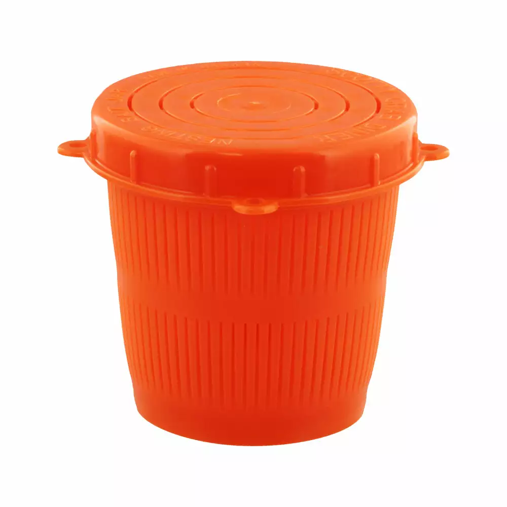 - The quick unscrew vented lid has the right size slots to send the bait smell out, yet protect the bait from most parasites