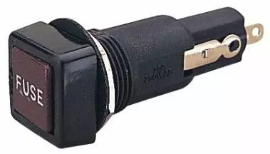 The panel mounted AGC Fuse Holder provides over-current protection in electrical circuits. Side release solder terminal. Accepts standard 1/4″ x 1-1/4″ AGC Style Fuses (444101-444110) sold separately. Maximum 10A @ 12 VDC. Constructed of molded Bakelite with stamped brass contacts and push-in cap.