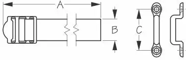 Heavy Duty Battery Box Strap includes a woven polypropylene strap, stainless steel buckle, two chrome plated brass brackets, and four #8 FH fasteners.